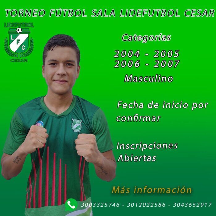 La Liga de Futbol de Cesar inicia el proceso de inscripciones en el torneo de fútbol sala que se celebra en el municipio de Valledupar.